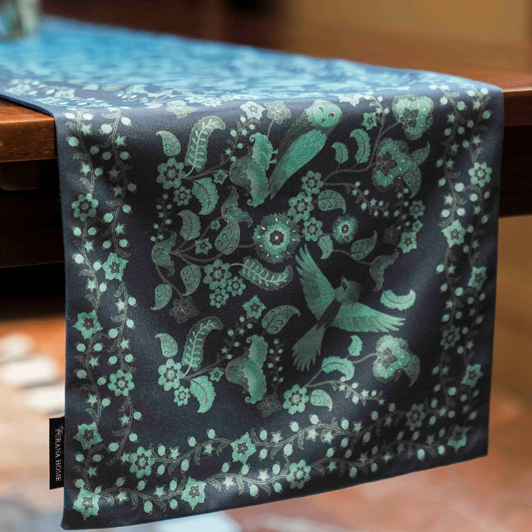 The set combines the Birds of Paradise Café Set with the signature Birds of Paradise Table Runner, bringing a cohesive and inviting touch to your coffee table or dining nook.