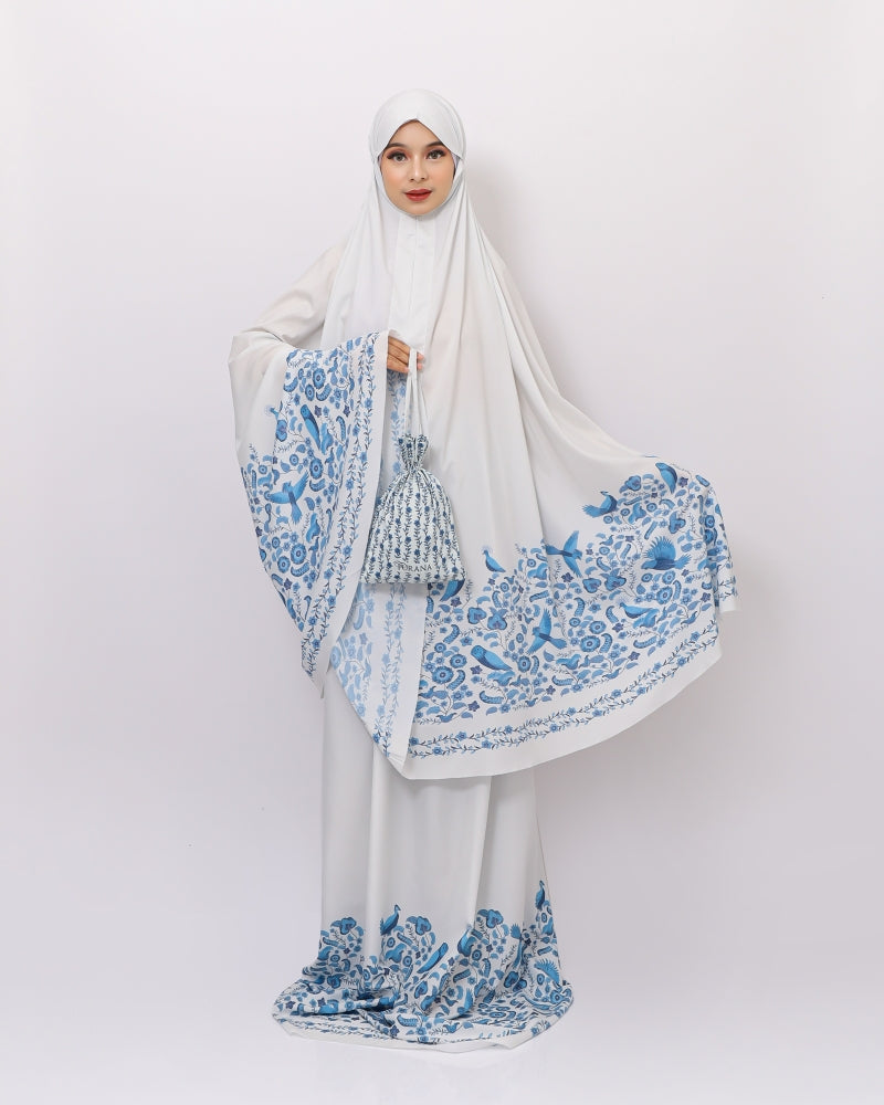 The PURANA Prayer Robe Set from the Tropipelago Birds Collection embodies serene beauty and gentle elegance through its calming Off White tone, enriched with refined illustrations of tropical birds — a poetic tribute to the natural grace of the Indonesian archipelago.