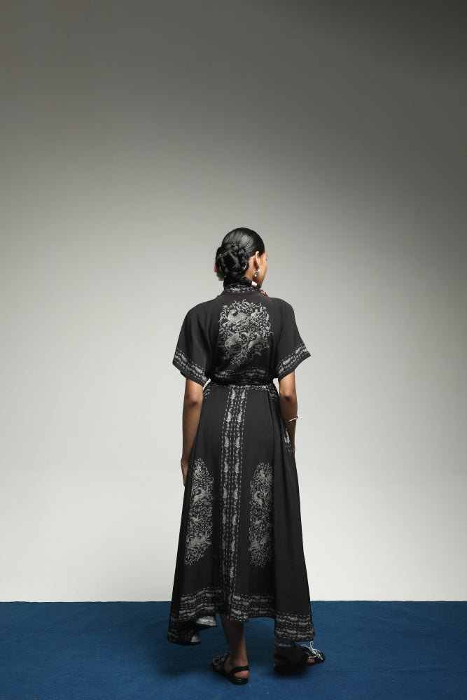 The black tone symbolizes quiet strength and sophistication, creating a versatile piece that stands beautifully on its own or paired with statement accessories. Designed for modern women who value both ease and refinement, this dress moves effortlessly from serene minimalism to bold expression.