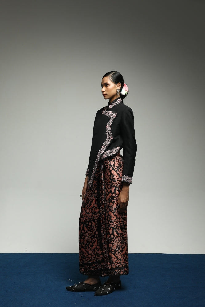Inspired by the graceful movement of the Janggan — the traditional Balinese kite symbolizing freedom and spirit — this piece represents balance between strength and serenity. Its clean lines and asymmetrical wrap detail create a sculptural look, designed to flatter while maintaining ease of wear.