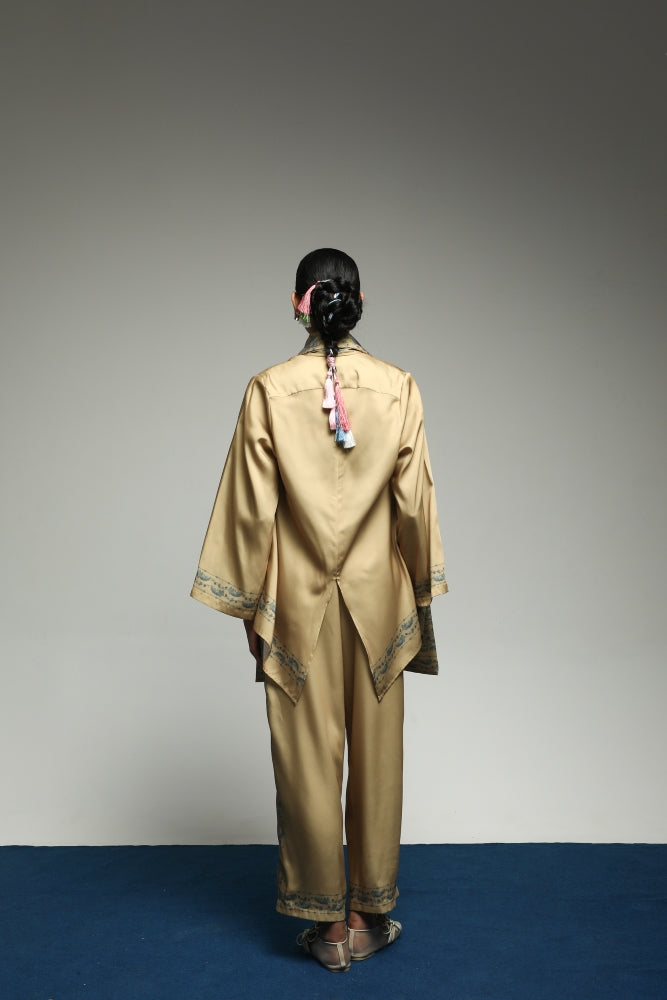The gold tone brings a touch of warmth and opulence, symbolizing optimism and grace. Enhanced by delicate motif detailing, it glows softly under light, creating a refined yet statement-worthy aesthetic. Elegant, versatile, and timeless, the Jungle Outer is a reflection of Purana’s essence — art in movement, culture in detail, and harmony in design.