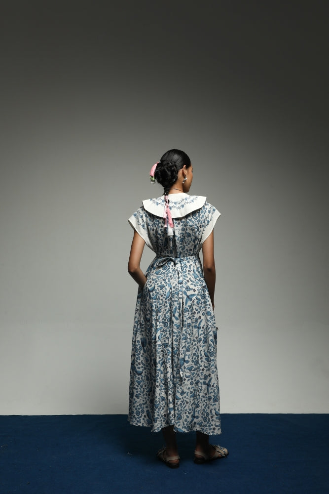 PURANA FULL MAXI LAPEL LONG DRESS TROPIPELAGO BIRDS - OFF WHITE