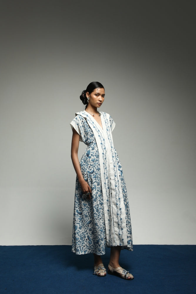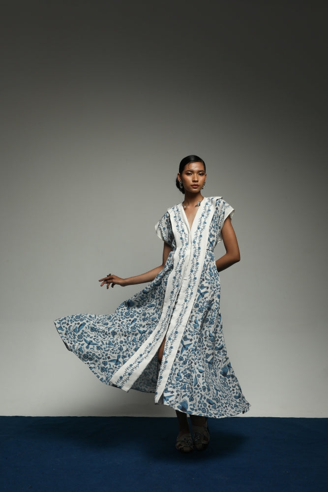 The off-white tone creates a serene canvas for the intricate blue Birds motif, evoking tranquility and purity. The lightweight rayon fabric drapes beautifully, offering breathability and comfort for tropical climates. This piece captures Purana’s essence — grace in motion, culture in detail, and art in every silhouette.