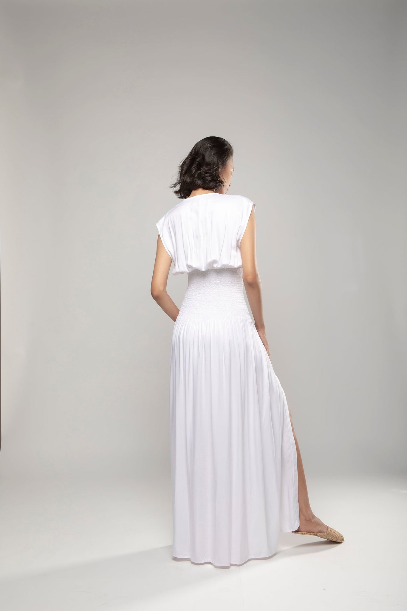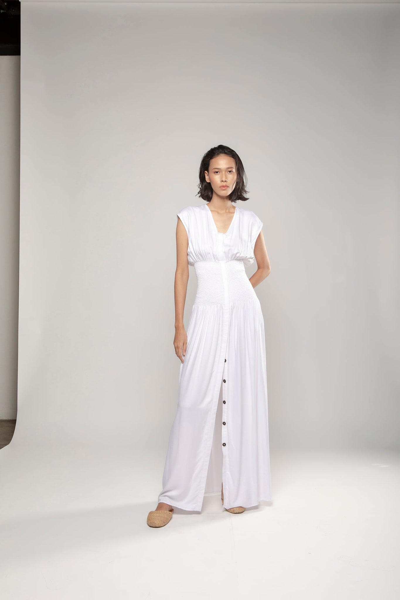 PURANA BASIC RUCHED MAXI DRESS - WHITE